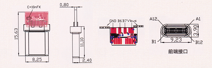產(chǎn)品描述:USB 3.1 Type-CF 前插后貼板上母座后蓋有缺口