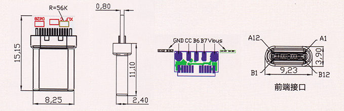 產(chǎn)品描述:USB AM 3.1 Type-C拉伸款 C-2 2號小板 56K電阻