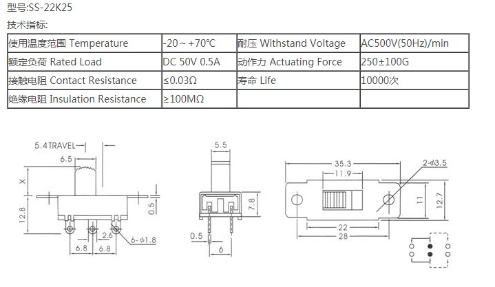 撥動(dòng)開(kāi)關(guān)SS-22K25