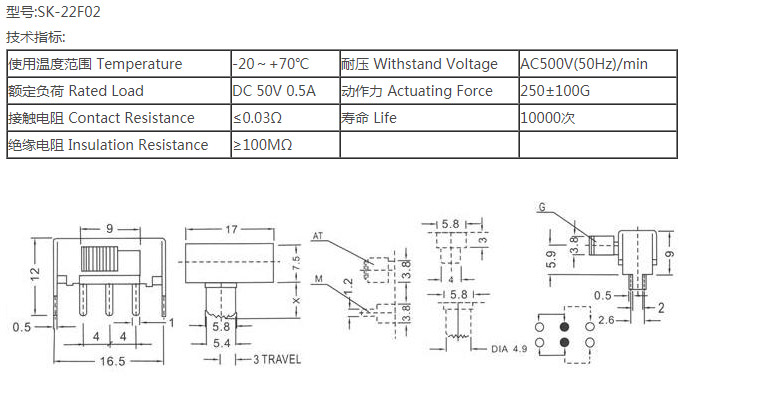 撥動開關(guān)SK-22F02