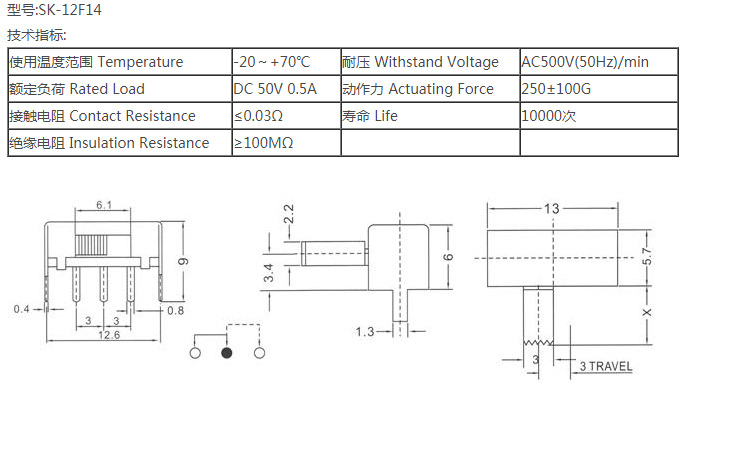 撥動開關(guān)SK-12F14
