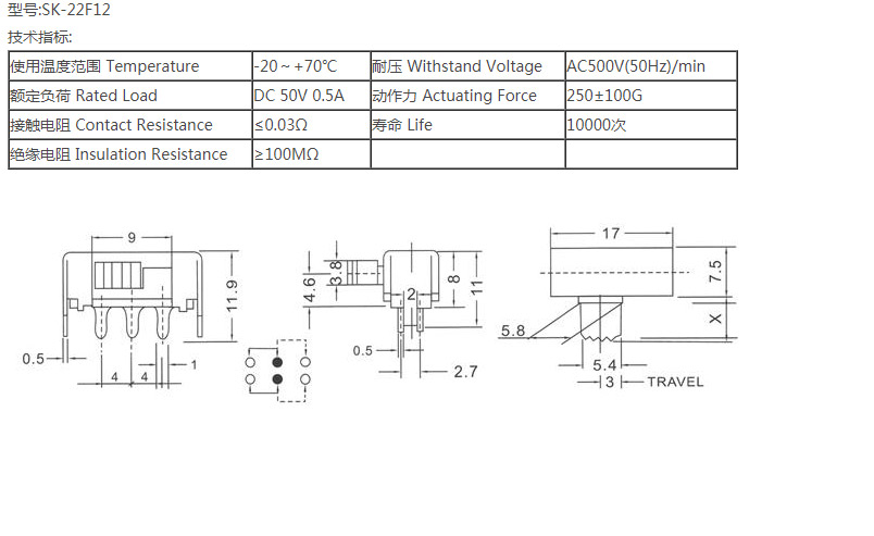 撥動(dòng)開(kāi)關(guān)SK-22F12