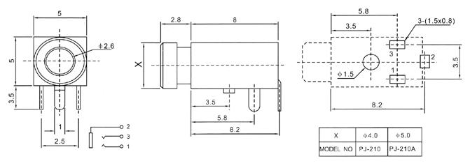 接觸電阻 Contact Resistance | ≤0.03Ω | 壽命 Life | 5000次 |