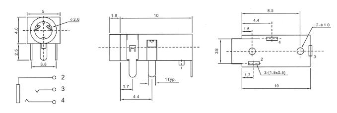 額定負(fù)荷 Rated Load | DC 30V 0.5A | 動(dòng)作力 Actuating Force | 3~20N |