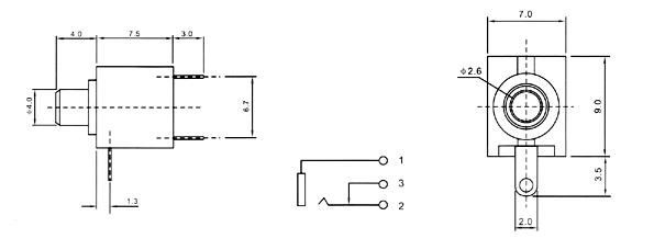 額定負荷 Rated Load | DC 30V 0.5A | 動作力 Actuating Force | 3~20N |