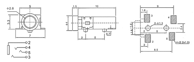 額定負(fù)荷 Rated Load | DC 30V 0.5A | 動(dòng)作力 Actuating Force | 3~20N |