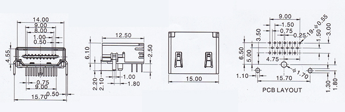 產(chǎn)品描述:HDMI 19PIN/F三排90度無耳