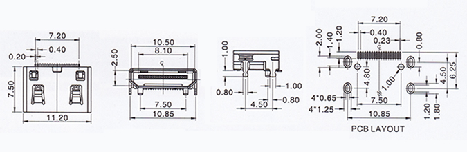產(chǎn)品描述:MINI HDMI 19PIN/F腳90度針貼片