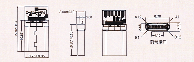 產(chǎn)品描述:USB AM 3.1 Type-C鉚合式短彎端厚3.0 C-2