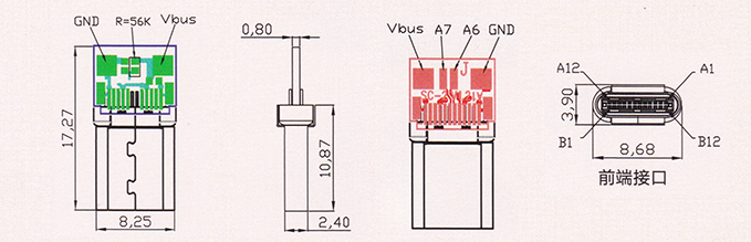 產(chǎn)品描述:USB 3.1 TYPE C鉚合款 SC-2 電阻56K