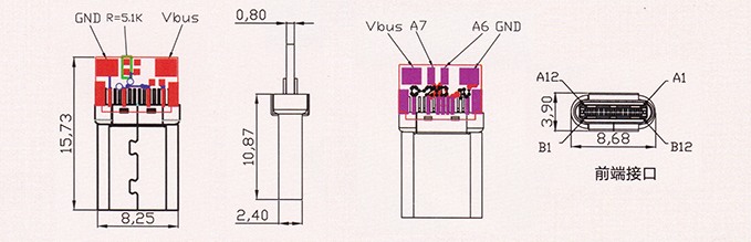 產(chǎn)品描述:USB 3.1 TYPE C鉚合款 C-2 5.1K電阻