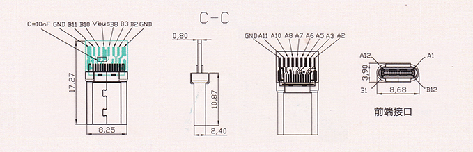 產(chǎn)品描述:USB 3.1 TYPE C鉚合款 SC-C 電容10nF