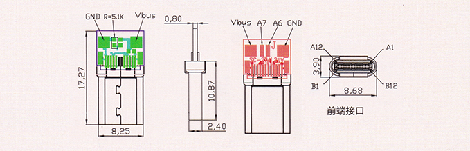 產(chǎn)品描述:USB 3.1 TYPE C鉚合款 SC-2 電阻5.1K
