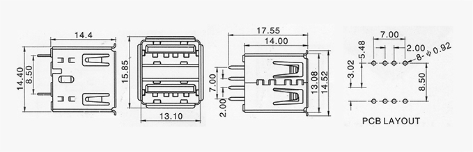 產(chǎn)品描述:USB AF 180度雙層直插短體