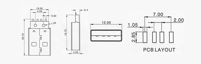 產(chǎn)品描述:USB AM SMT 魚叉 兩圓孔