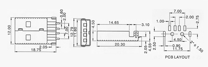產(chǎn)品描述:USB AM 沉板 SMT 無(wú)柱