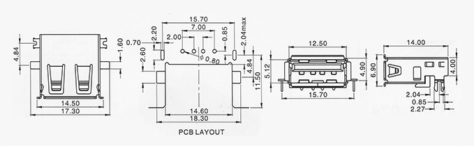 產(chǎn)品描述:USB AF 沉板板上4.9(17.3)