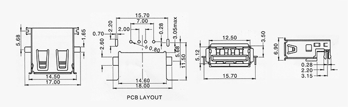 產(chǎn)品描述:USB AF 沉板板上3.9