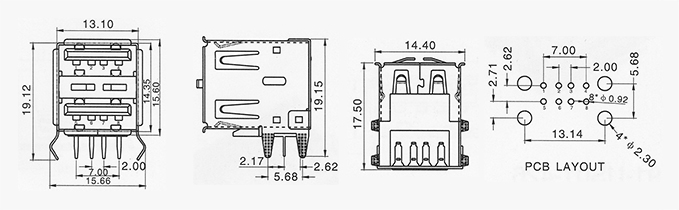 產(chǎn)品描述:USB AF 90度雙層半包雙彈