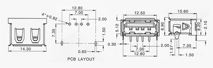 產(chǎn)品描述:USB AF 10.6兩錐腳有卷邊90度