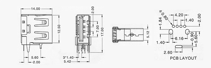 產(chǎn)品描述:USB AF 側(cè)插短體直腳無(wú)卷邊