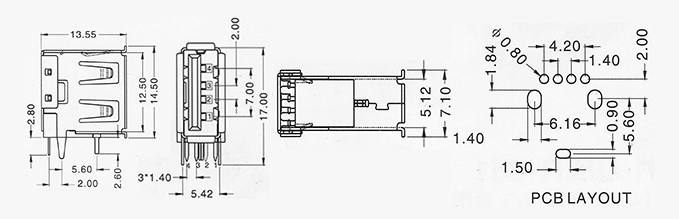產(chǎn)品描述:USB AF 側(cè)插短體直腳加長(zhǎng)