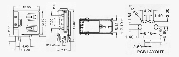 產(chǎn)品描述:USB AF 側(cè)插短體彎腳反向