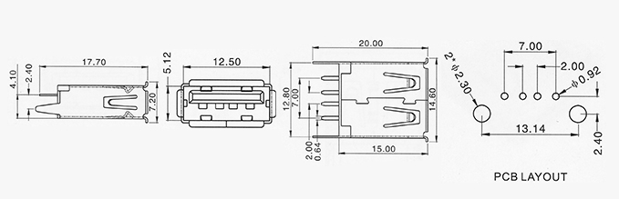 產(chǎn)品描述:USB AF 180度直插直腳 15.0