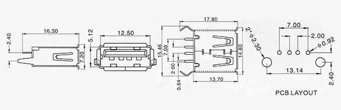 產(chǎn)品描述:USB AF 180度直插彎腳 13.7