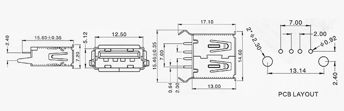 產(chǎn)品描述:USB AF 180度直插彎腳無卷邊 13.0 彈片加筋
