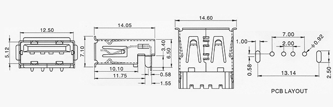 產(chǎn)品描述:USB AF 90度沉板直腳