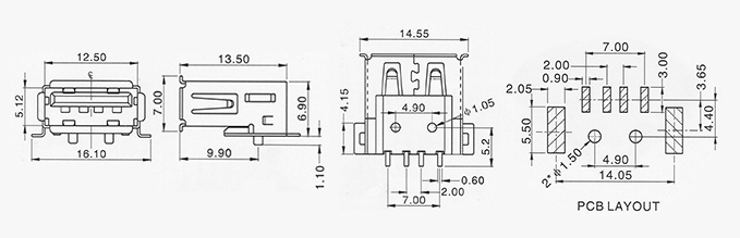 產(chǎn)品描述:USB AF 全貼片定位柱 1.05