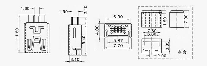 產(chǎn)品描述:MINI USB 5PIN/F 焊線式帶護(hù)套