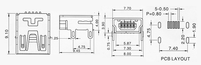 產(chǎn)品描述:MINI USB 5PIN/F SMT 四腳