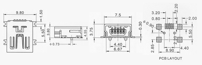 產(chǎn)品描述:MINI USB 5PIN/F SMT(0.3)