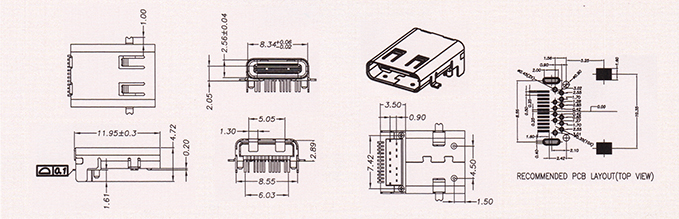 產(chǎn)品描述:USB Type-CF 11.95前插后臺板上母座